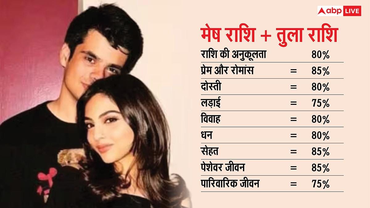 तुला और मेष राशियों का मेल ज्योतिष में उत्साहपूर्ण और संतुलित माना जाता है. तुला की समझदारी और मेष की साहसिक प्रवृत्ति मिलकर रिश्ते में संतुलन, रोमांस और सहयोग पैदा करती है. हालांकि मेष और तुला अनुकूल राशि होने के साथ ही राशिचक्र में एक-दूसरे के विपरीत हैं और इनका रिश्ता बेहद भावुक और चुनौतीपूर्ण भी हो सकता है. लेकिन यदि ये एक-दूसरे का सम्मान करने और एक-दूसरे की जरूरतों को सुनने-समझने के लिए तैयार हों तो ये एक मजबूत और खुशहाल रिश्ता बना सकते हैं.